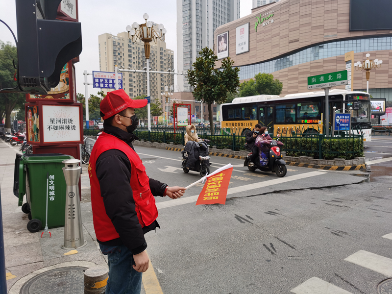 開(kāi)展文明交通志愿服務(wù)。3月5日,礦投公司志愿者在包保交通路口開(kāi)展文明交通勸導(dǎo)志愿服務(wù)。針對(duì)行人亂穿馬路、亂闖紅燈、非機(jī)動(dòng)車(chē)不按規(guī)定路線(xiàn)行駛等違法行為進(jìn)行宣傳教育,引導(dǎo)市民文明出行,讓文明出行成為市民生活習(xí)慣,促進(jìn)城市交通秩序水平提升。